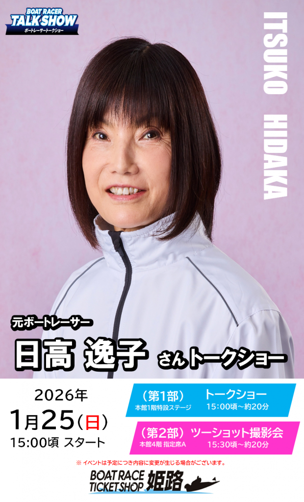 女子ボートレース界の第一線で長らく活躍された日高逸子元選手のトークショーを見逃すな!