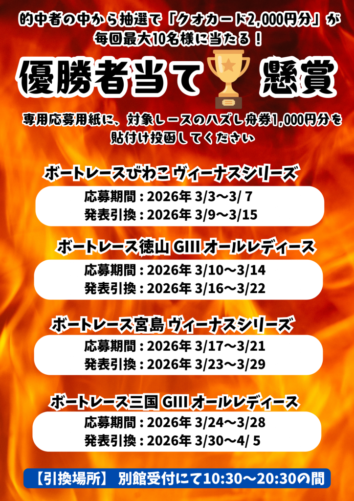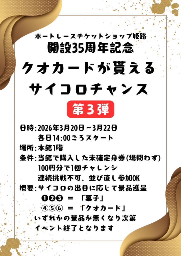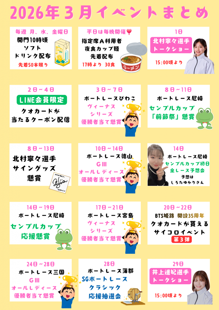 2026年2月1日(日)~2月28日(土)の期間、指定席A(ボートレースチケットショップ姫路 本館4階)を中心に様々なイベントやサービスを実施!