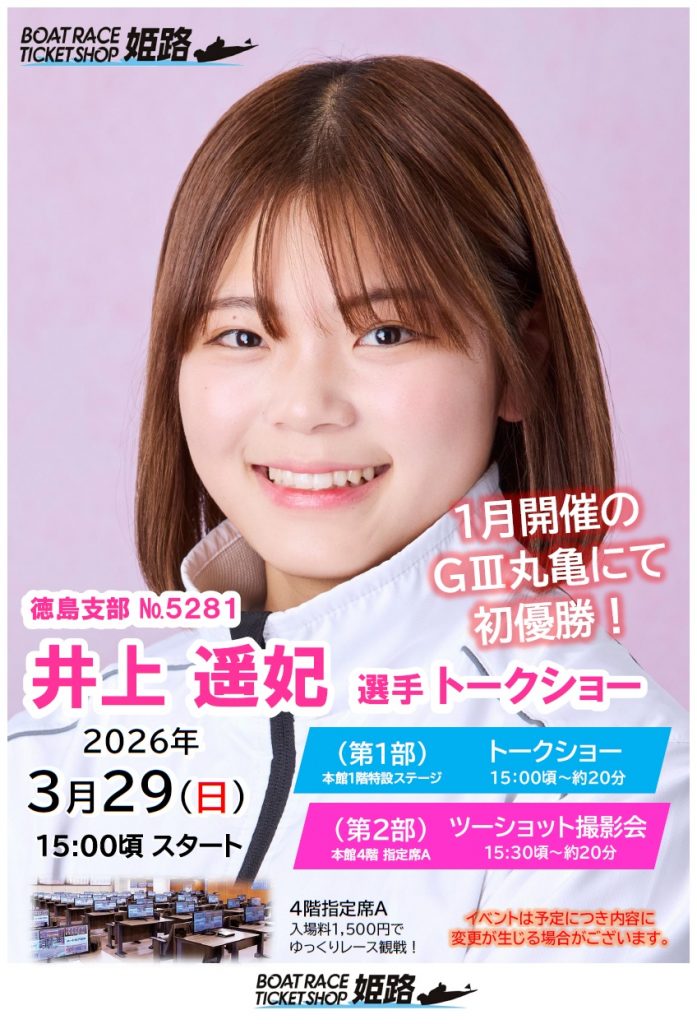 3月29日には井上遥妃選手のトークショーも開催します!