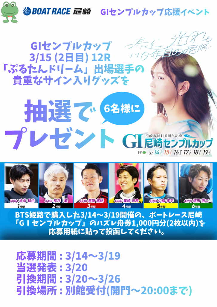 BTS姫路で購入したハズレ舟券1,000円分を応募用紙に貼って、本館1階コンコースの応募箱に入れてください!